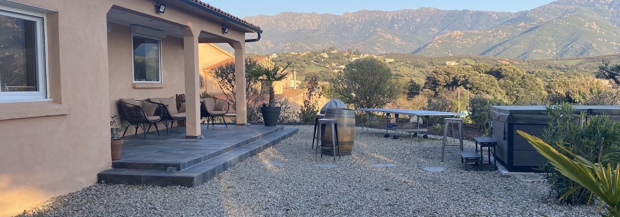Retrouvez les principaux équipements de la Villa Ghjuvan, charmante maison de 75m2 bâtie au coeur d’un jardin fleuri et arboré de 600m2, située sur la plaine de Peri. L’arrivée et le départ sont autonomes via une boîte à clef sécurisée située à l’entrée au niveau du portail motorisé donnant sur un parking privatif et vidéo-surveillé et pouvant accueillir 2 véhicules.